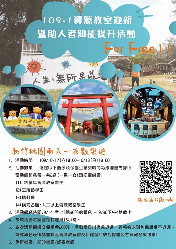 3.活動報名時間:9/14早上8點30開始報名-9/30下午4點截止