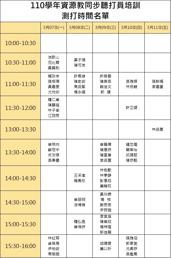 (五)測打通過,可進入培訓課程之錄取名單將於3/16(三)前公告於資源教室網頁。請錄取同學務必準時參與培訓課程。