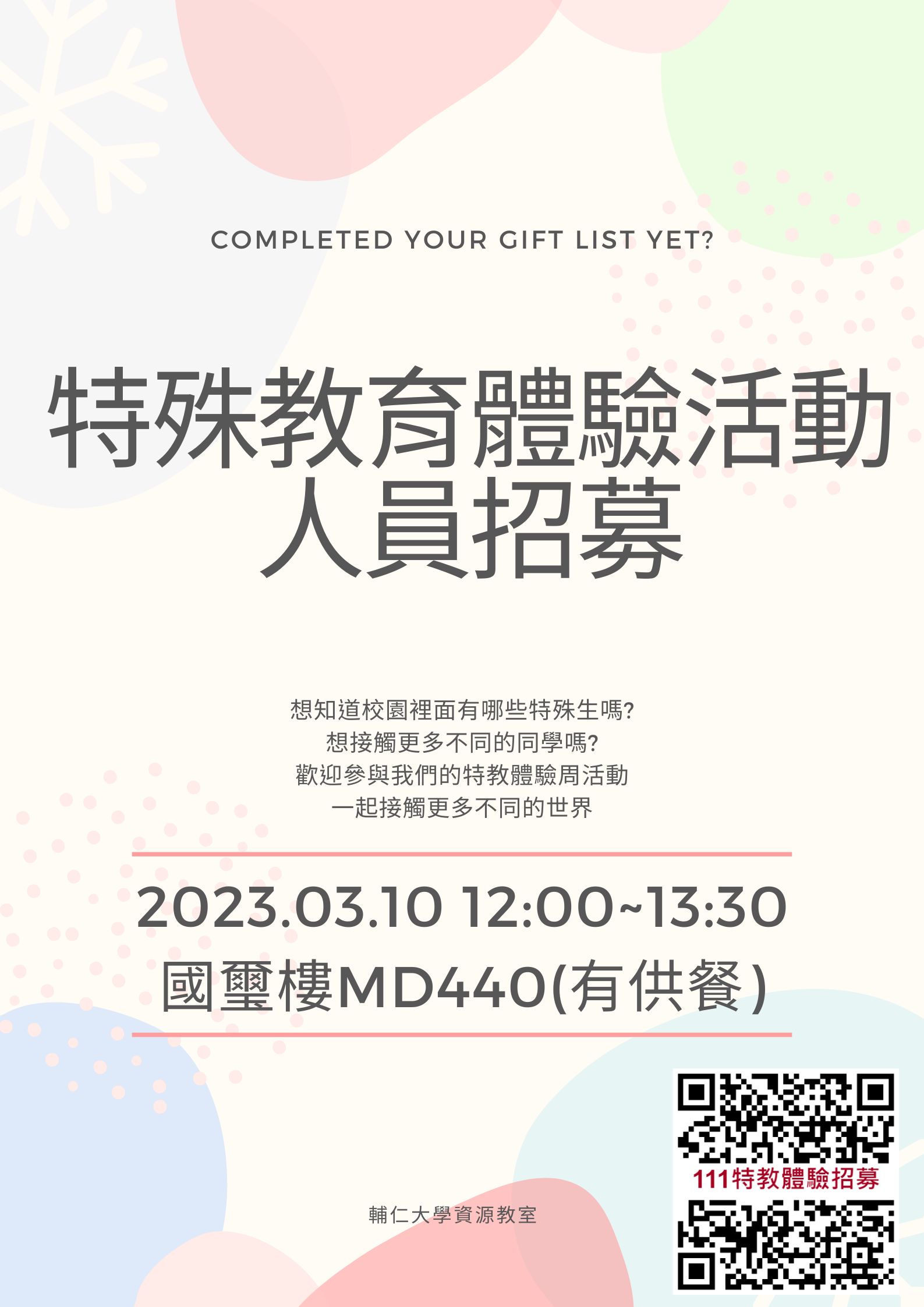111學年度特殊教育體驗活動籌備夥伴招募中!!!👋👋
