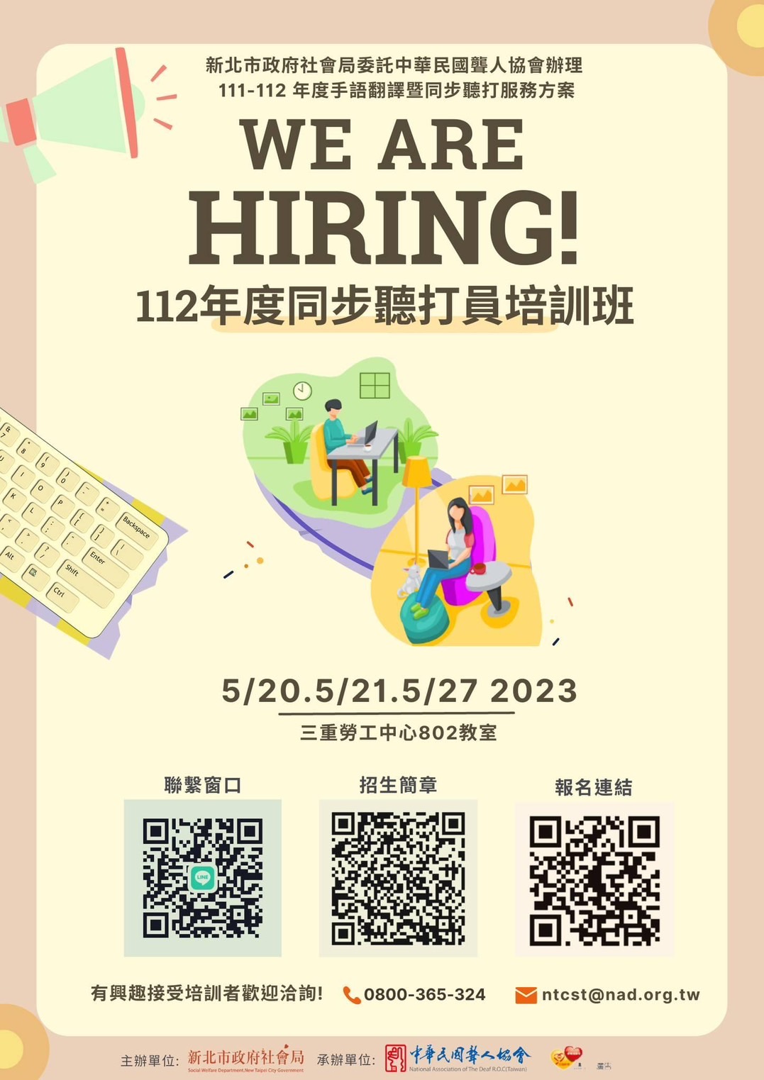 新北市政府社會局委託中華民國聾人協會辦理「112年同步聽打員培訓班」